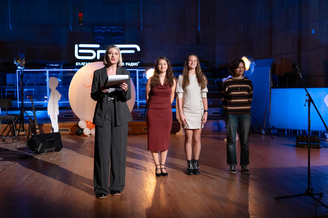 Милен Митев връчи наградата в категория "Тийн тайм ОТГОВОРЕН" на 18-годишната София Николова, ученичка в ЧЕГ "Проф. Иван Апостолов". Финалисти в категорията са Ивет Стоянова на 18 години от Берковица, ученичка в ПГ "Д-р Иван Панов" и Кремена Иванова на 17 години от СУ "Цветан Радославов", гр. Свищов.