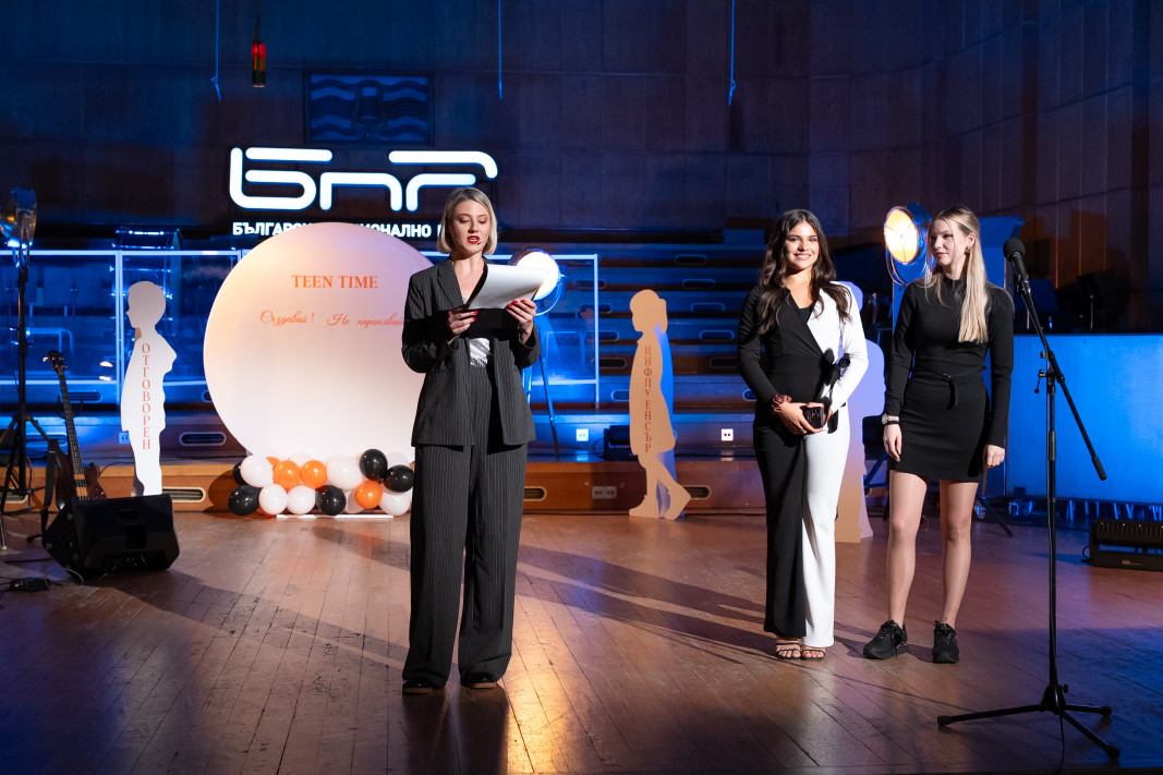 Победителите в първите национални награди "Тийн тайм" бяха обявени на церемония в Първо студио на Българското национално радио. Кампанията на БНР е инициирана от едноименното предаване на програма "Христо Ботев" и се реализира с подкрепата на Регионален Център София-ЮНЕСКО за опазване на нематериалното културно наследство в Югоизточна Европа под мотото "Създавай! Не наранявай!".