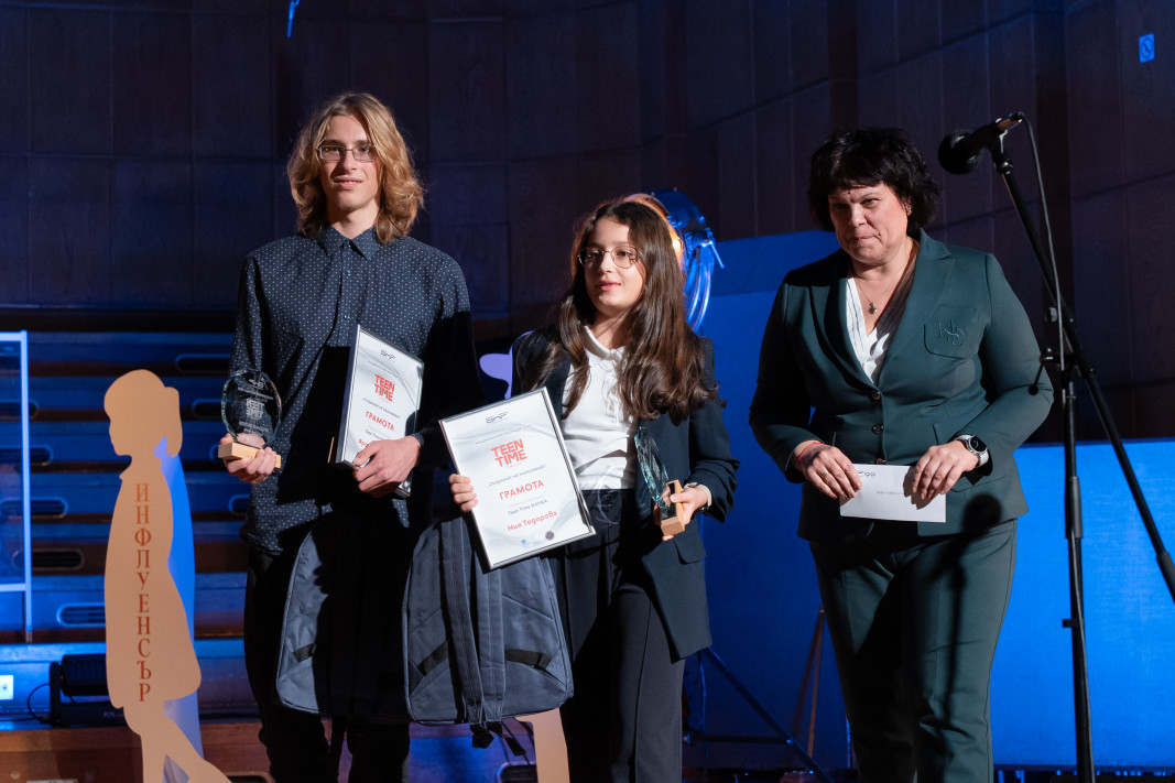 18-годишната Ивана Събева от СУ „Академик Емилиян Станев“ в София стана "Тийн тайм ИНФЛУЕНСЪР“, а останалите двама финалисти в категорията за младежи, владеещи социалните медии с ценни посоки за развитие, са Златиана Симеонова на 17 години от НХГ "Цанко Лавренов" - Пловдив и Константин Стоев на 18 години от София, 157 ГИЧЕ "Сесар Вайехо". Те получиха своите отличия от актьора и писател Борислав Вълов - Ей Бо.