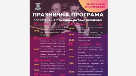 С множество културни и спортни събития Болярово отбелязва 51 години от обявяването си за град . Кулминацията е на 25 и 26 октомври, но под знака на празника минава цялата седмица. В програмата са включени и официални откривания на обновени сгради и нова детска площадка. На 26 октомври – Димитровден крайграничния град ще събере..