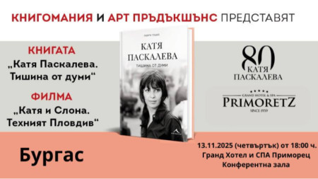 Журналистът Георги Тошев ще представи книгата си "Тишина от думи" и филма „Катя и Слона. Техният Пловдив“, посветени на 80-годишнината от рождението на великата актриса. Срещата с него ще е на Гранд хотел и Спа Приморец. Катя Паскалева e една от енигмите на българското кино и театър, участва в над 50 български и чужди филми, сред които „Вилна зона”..
