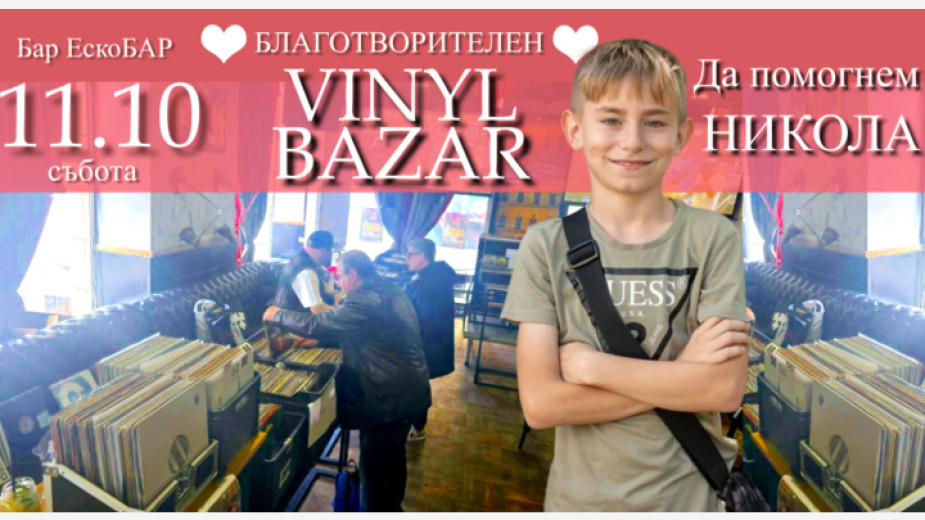 Винил базар с благотворителна кауза в подкрепа на 10-годишния Никола Димов ще се проведе в EscoBar в Бургас. Събитието обединява музика, колекционерска страст и човешка съпричастност. Ценители на грамофонни плочи и компактдискове ще могат не само да открият редки издания, но и да помогнат на едно дете да продължи да ходи без болка.