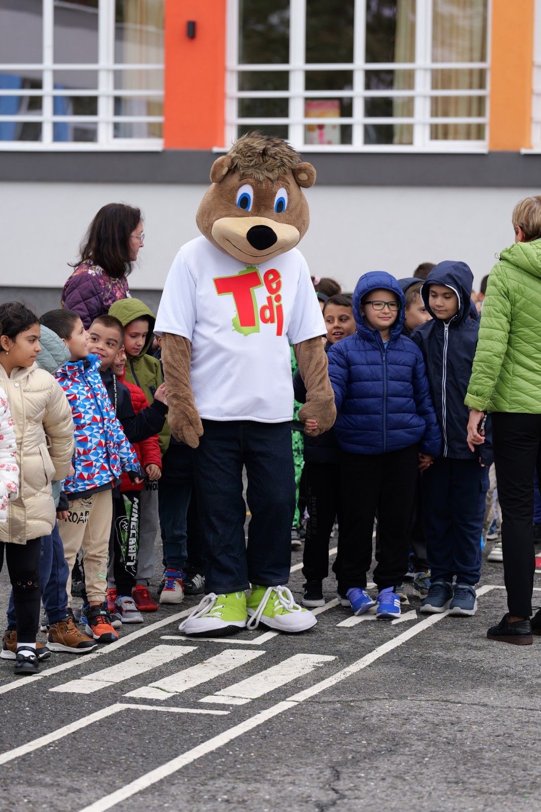 платена публикацияЗа шеста поредна година образователната кампания „Пресичам безопасно с TEDI” гостува в Бургас. Домакин на инициативата бе Основно училище „Антон Страшимиров“, където първокласници придобиха ценни знания за пътната безопасност от представители на Главна дирекция „Национална полиция“. Техен верен спътник в уроците бе и мечето TEDI.