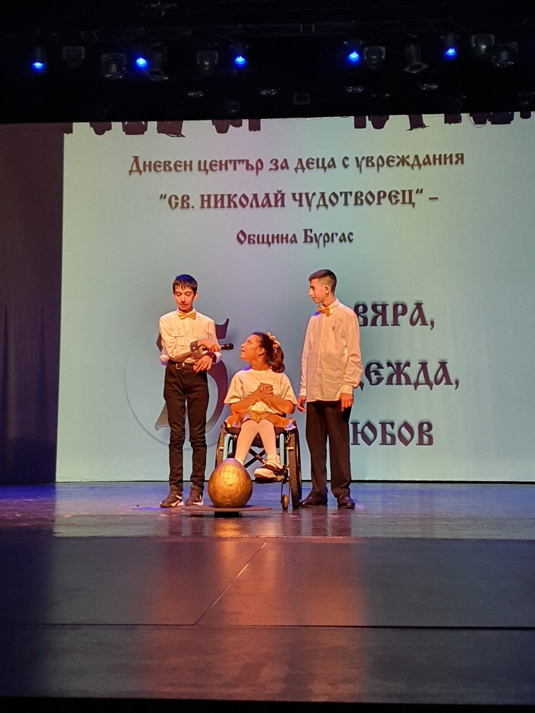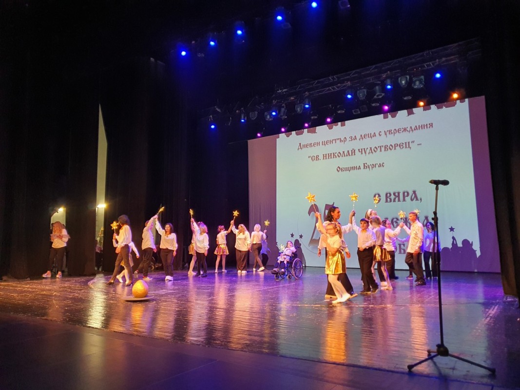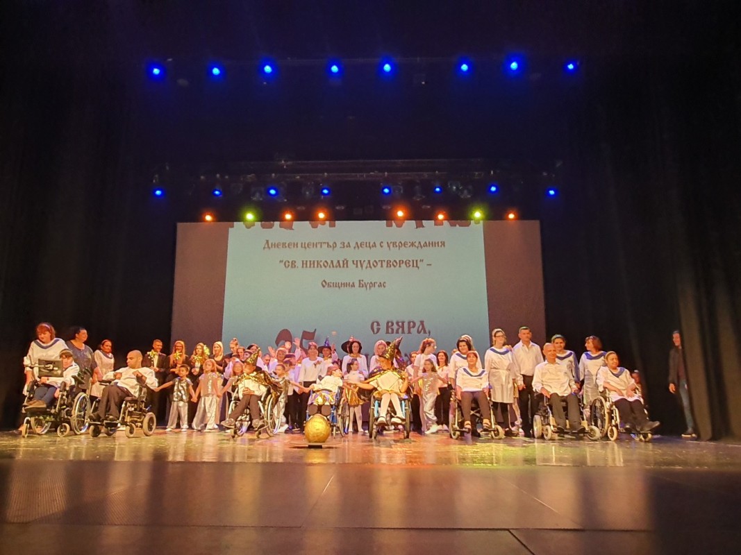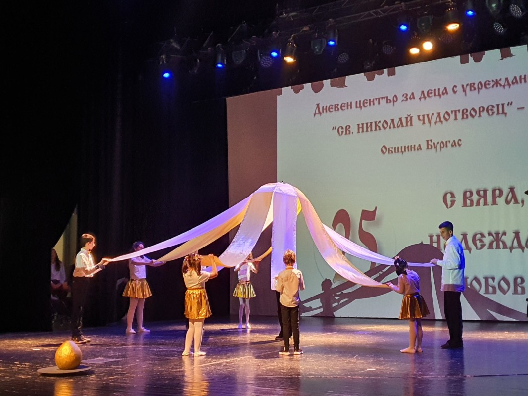 С емоционален празничен концерт под надслов „С вяра, надежда и любов“ Дневният център за деца с увреждания „Св. Н. Чудотворец“ в Бургас отпразнува 25-годишен юбилей в Културен дом НХК.