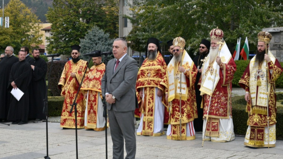 Церемонията продължи с молебен за здраве и благоденствие за Сливен и всички жители, отслужен от сливенския митрополит Арсений. „Поздравявам и приветствам всички вас, които сте се събрали тук заедно за обща молитва. Желая ви здраве и много радост за вас и вашите семейства. Нека Божията помощ и Неговата божествена благодат и закрила, всякога да изобилстват над нашия град и община и на цялото ни свидно Отечество. Специално се обръщам към господин кмета, общинското ръководство, към господин областния управител и всички институции в града, които правят всичко по силите си за доброто и видимо разхубавяване на нашия град“, заяви митрополит Арсений.