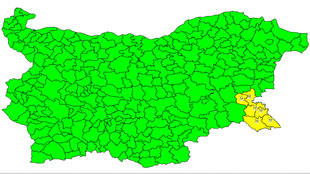 Националният институт по метеорология и хидрология от своя страна издаде жълт код за обилни валежи в региона. По-интензивни дъждове се очакват преди обед, а следобед постепенно ще отслабват и спират. Средните денонощни количества ще са около и над 30 литра на кв. м. Няма данни за риск от наводнения.