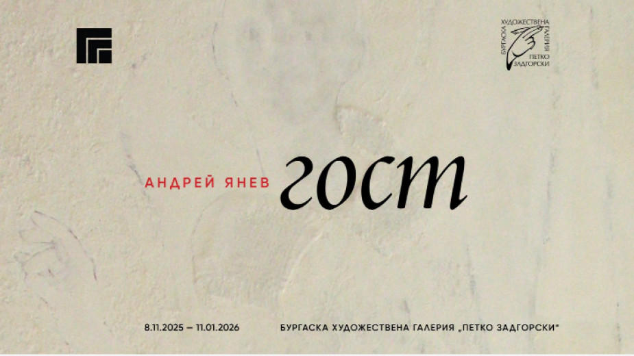 Изложбата „Гост“, която представя едноименната творба на художника Андрей Янев се открива днес в Бургас. Тя е създадена преди повече от 22 години за съвместната му изява с колегата му Георги Динев. Експозицията се осъществява като част от цикъл изложби, с които творецът отбелязва своя 60-и рожден ден.