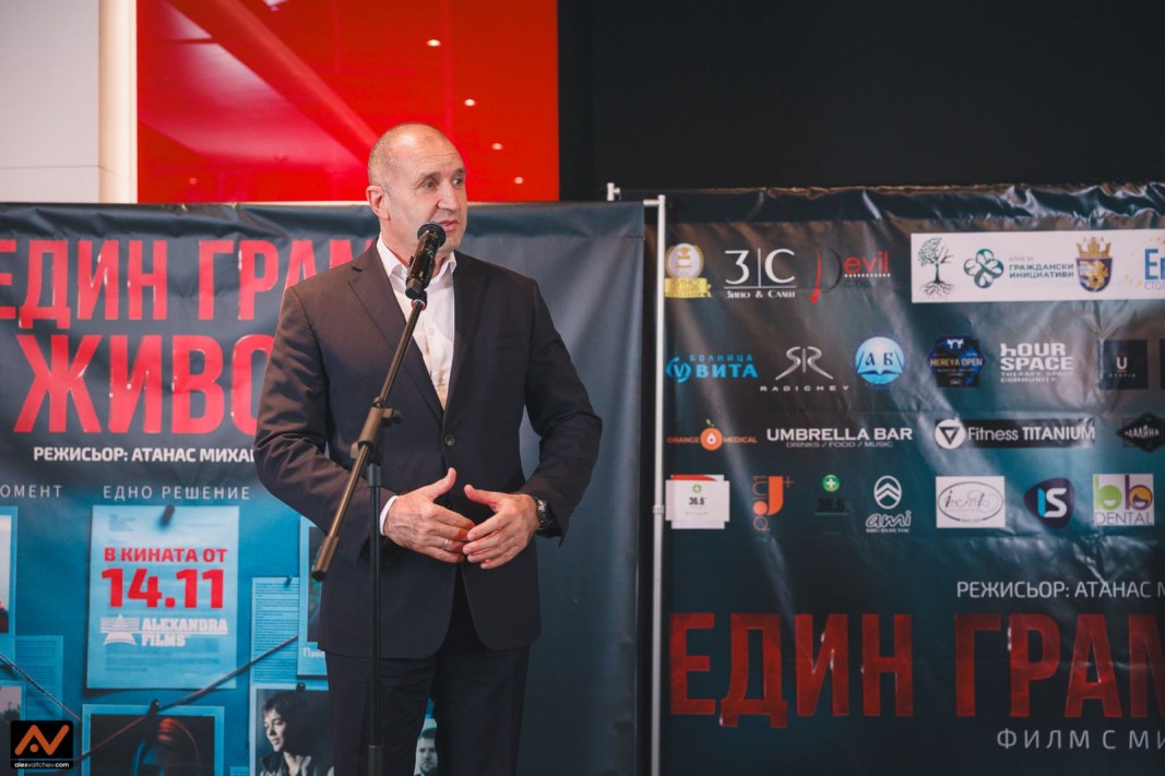 Президентът Румен Радев пожела успех на новия български филм "Един грам живот", който поставя темата за употребата на наркотични вещества от деца и подрастващи. Лентата влиза в кината на 14 ноември, а държавният глава е част гала премиерата в столицата.