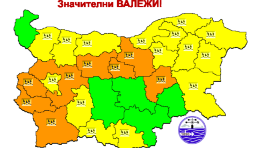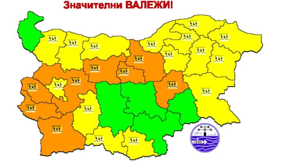 Оранжев код за обилни валежи е обявен за днес за 8 области на страната. Това са областите Сливен, Кюстендил, Перник, Благоевград, Ловеч, Габрово, Велико Търново и София-област.
