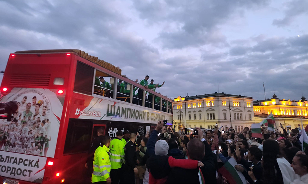 Our national team made a tour of Sofia, which ended amidst the stormy ovations of the crowd of many thousands waiting for them in front of the Alexander Nevsky Cathedral.