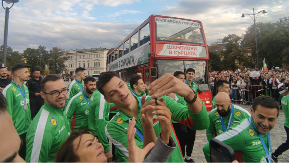 "I am extremely happy that we managed to unite the nation and that you are all here to share the success of one country", the captain of the volleyball team Aleks Grozdanov told the crowd, who were chanting "Bulgarians – heroes".