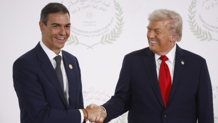 Американският президент с нова заплаха към Испания. Доналд Тръмп обяви, че обмисля налагането на мита срещу Мадрид. Ден след срещата си с премиера Педро Санчес в Египет и топло ръкостискане между двамата, Доналд Тръмп се върна към острия тон спрямо Испания. Американският президент обяви, че е много недоволен от правителството в Мадрид заради..
