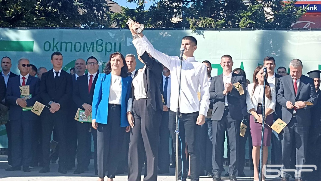 "Предавам ключа на града за 29-и път на младите хора с устрем, със знания и с куража да развиват града ни", каза Надежда Чакърова при връчването му.