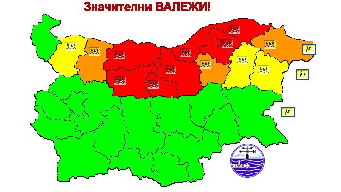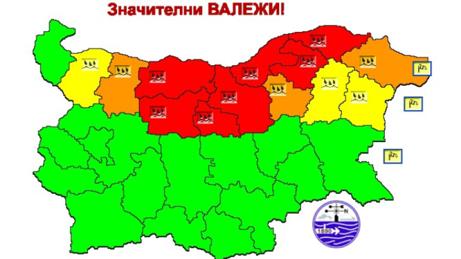 От Националния институт по метеорология и хидрология обявиха, че вдигат степента на опасност от "оранжев" в "червен" код за 7 области на страната.