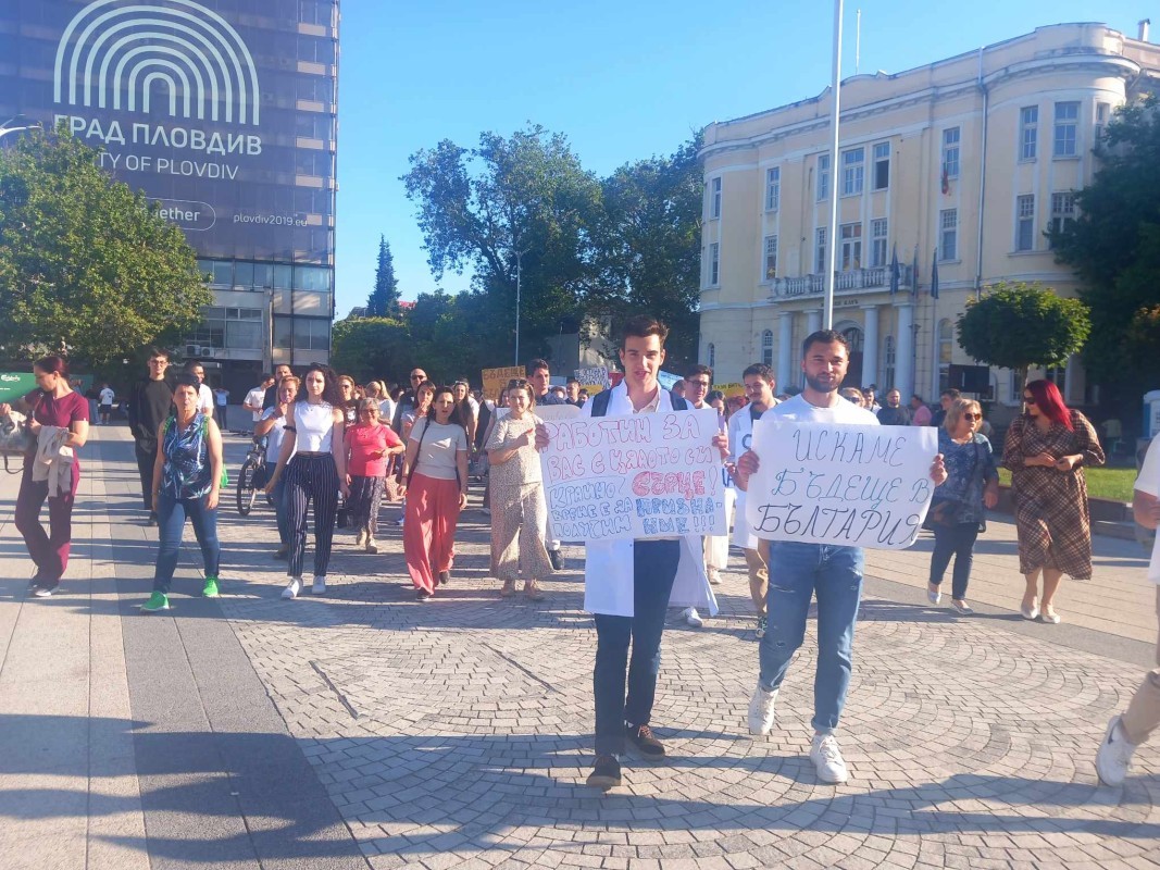 Студентите по медицина и медицинските специалисти отново излизат на протест в Пловдив. Поводът е нерешените им проблеми въпреки разговорите с здравните институции и пряко ангажираните политически партии.