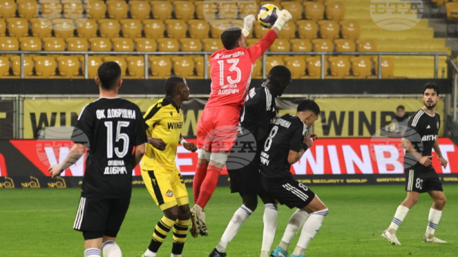 Точно след половин час игра Добрдужа поведе в резултата. След центриране на Антон Иванов отдясно Матеус Леони надскочи Армстронг Око-Флекс и насочи добре с глава. Християн Славков успя да парира, но при добавката Ивайло Михайлов се разписа от близка дистанция, за да даде аванс на своя тим.
