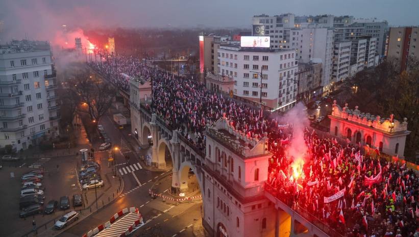 В центъра на Варшава се проведе Марш на независимостта, организиран от десни политически групи, в чест на 107-ата годишнина от възстановяването на независимостта на Полша, предаде полската новинарска агенция ПАП. Участниците, носещи бяло-червените национални знамена, преминаха през булевард "Йерусалимски" в града и прекосиха мост над река Висла, за да завършат марша на Националния стадион. Това съобщи БТА.