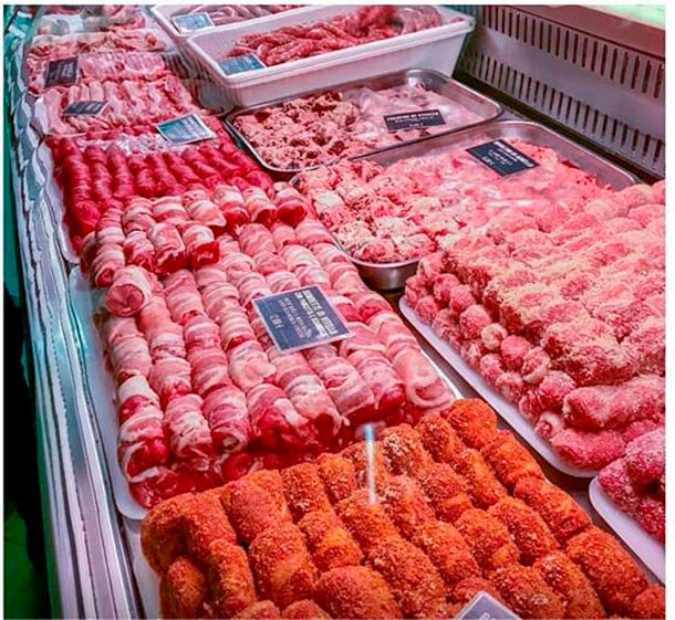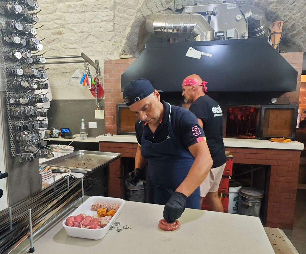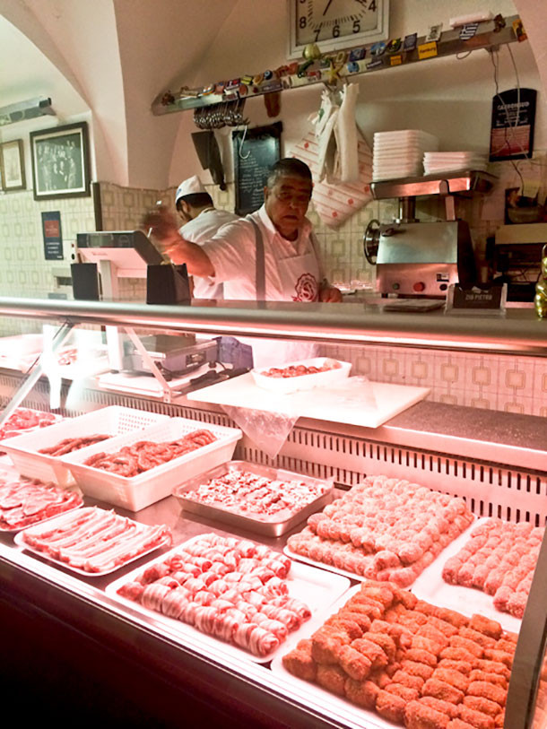 Историческият център изобилства от месарници, но не обикновени, а пряко свързани с кокетни ресторантчета. Хранителният ритуал е прост – минавате през щанда с мръвките, избирате каквото ви се яде (а разнообразието е впечатляващо), отнасяте връчената ви кутия до майстор-готвача, който свещенодейства пред отворена пещ и той се захваща да приготви ястията ви. Всички меса се пекат на вертикални шишове. Огънят примамливо блещука и на неговия фон се открояват нанизаните на метални пръти цели картофи, заедно с корите и всякакви месни угоди – от агнешки котлети до бомбети, вид свински рулца. Заради пещта наричат заведенията форно пронто – отворено огнище.