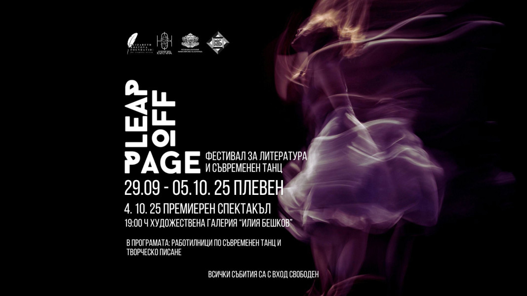 Между 29 септември и 5 октомври в гр. Плевен се провежда фестивалът за литература и танц Leap Off Page, организиран от фондация "Елизабет Костова". Събитието има резидента част, в която смесени екипи от автори, хореографи и танцьори създават съвместни творби, които после ще бъдат представени пред публика, работилници с местните творци и представления които показват резултатите от едноседмичната работа на участниците.