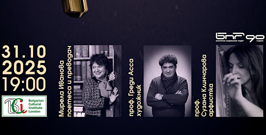 Среща-разговор с емблематични български творци, отличени в кампанията "Българските посланици на културата" на БНР, ще се проведе в Българския културен институт в Лондон на 31 октомври, петък, от 19.00 ч.