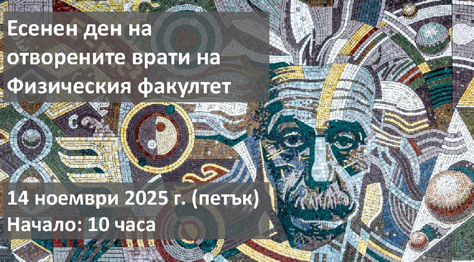 В петък на 14 ноември 2025 г. от 10 часа Физическият факултет на СУ "Св. Кл. Охридски" отваря вратите си за всички, които искат да преживеят няколко интересни и ползотворни часа.