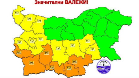 НИМХ издаде предупреждение за опасно време в шест области на страната. Оранжев код за значителни валежи е в сила за Кърджали, Хасково, Смолян, Пазарджик, Кюстендил и Благоевград . За други девет области, както и за София-град , е обявен жълт код . Очаква се облачно време с валежи в по-голямата част от страната. Значителни количества дъжд..