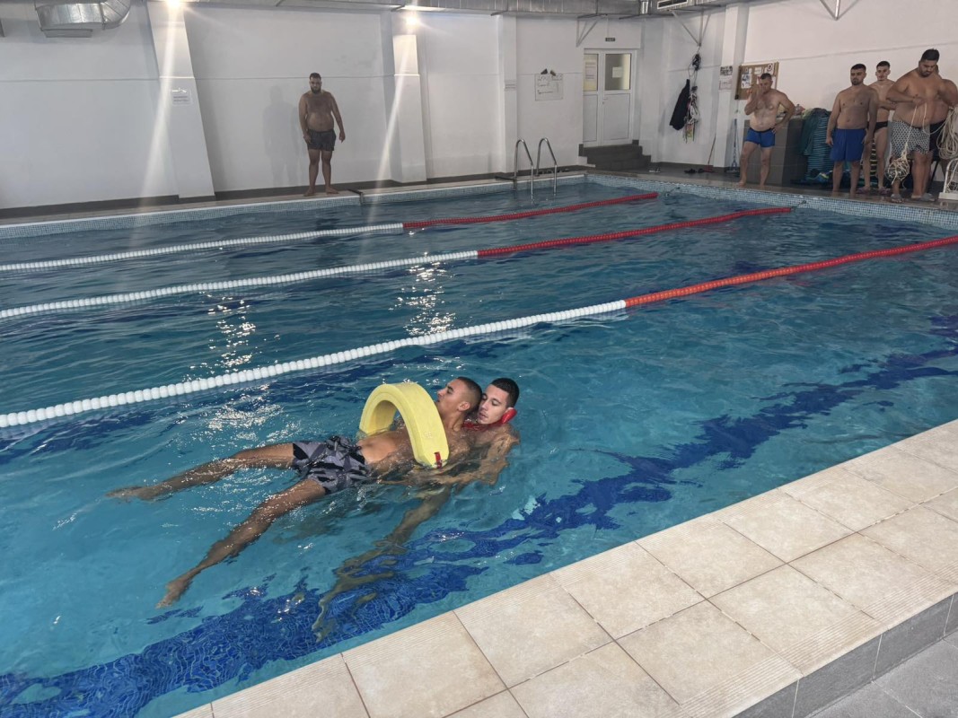 След полагане на тест за проверка на теоретичните и медицинските знания, курсистите демонстрираха и практическите си умения в закрития басейн на ЕГ „Христо Ботев“. Те покриха нормативите по плуване, показаха спасителни техники, умения за оказване на първа помощ и работа със спасителни средства.