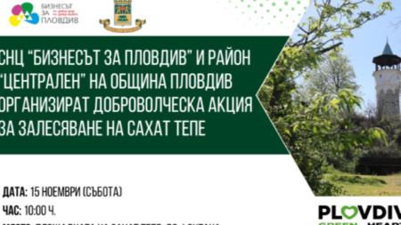 100 дръвчета от различни видове – копривки, дъб, черен бор и бял ясен ще бъдат засадени на Сахат тепе днес. Инициативата е част от кампанията „Зеленото сърце на Пловдив“на сдружение „Бизнесът за Пловдив“ и район „Централен“. В акцията ще вземат участие представители на администрацията и компаниите от сдружението. На доброволците ще бъдат..
