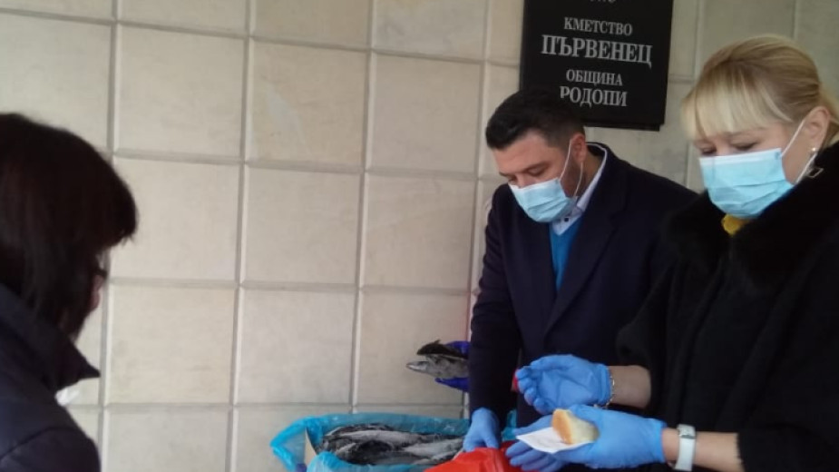 Всеки желаещ получи риба скумрия и питка, която беше предоставена от кметовете при спазването на всички противоепидемични мерки.