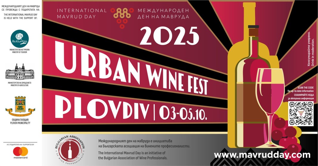 Пловдив от днес до пети октомври празнува Международния ден на мавруда с Urban Wine Fest - Plovdiv. Фестивалът е част от официалната програма на делегатите от Глобалната конференция за винен туризъм към Световната организация по туризъм към ООН (UN Tourism), която ще се проведе в Пловдив. Мостът над ул. „Гладстон“ ще се превърне в оживена винена сцена, където в рамките на три дни под тепетата ще се леят аромати, вкусове и музика.