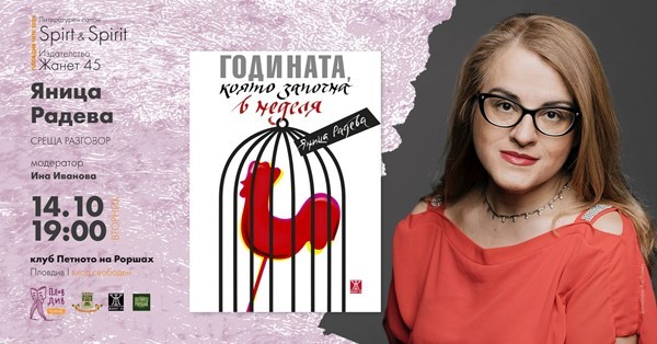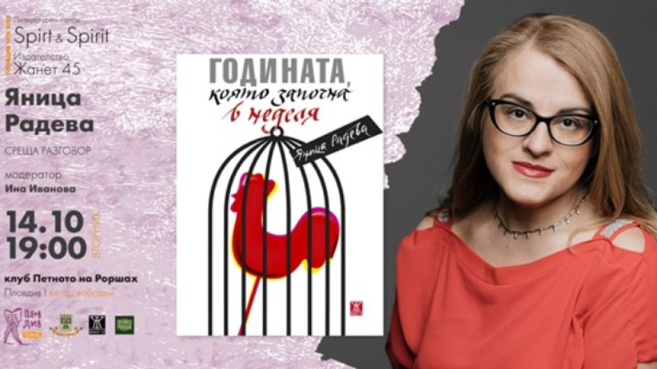 Продължават срещите в Литературен Салон "Spirt & Spirit" и Пловдив чете. Тази вечер в клуб „Петното на Роршах“ ще е представянето на последния роман на Яница Радева. „Годината, която започна в неделя“.