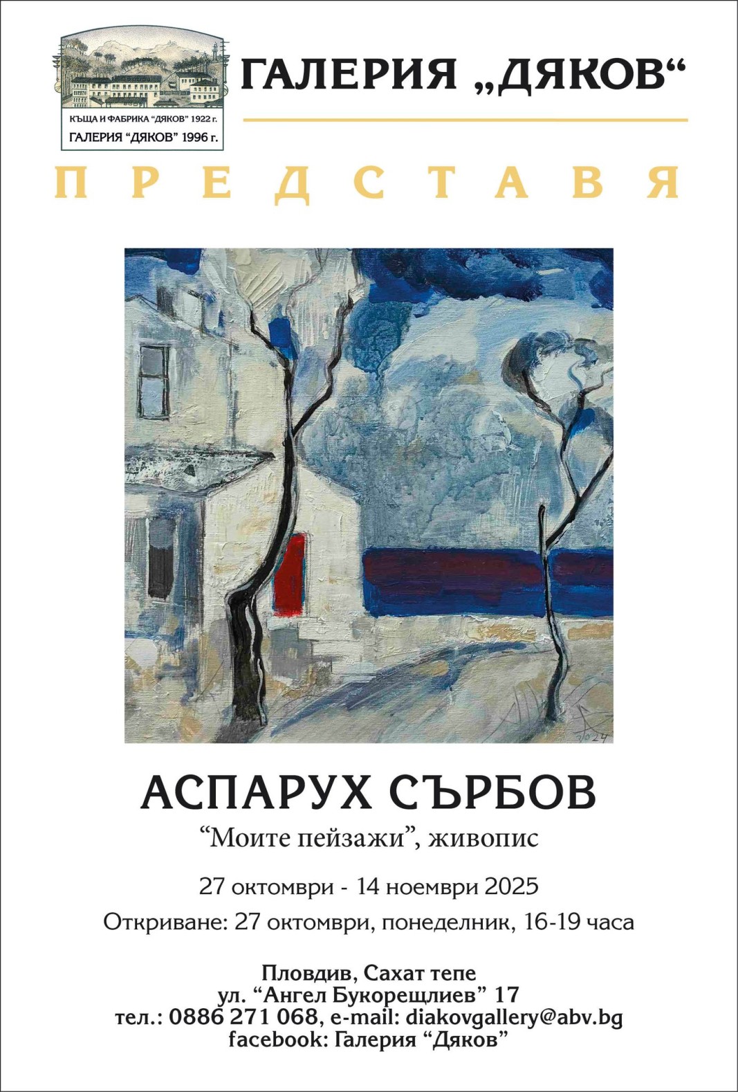Художникът Аспарух Сърбов открива самостоятелна изложба "Моите пейзажи" в галерия "Дяков". Творецът живее и работи в Асеновград.