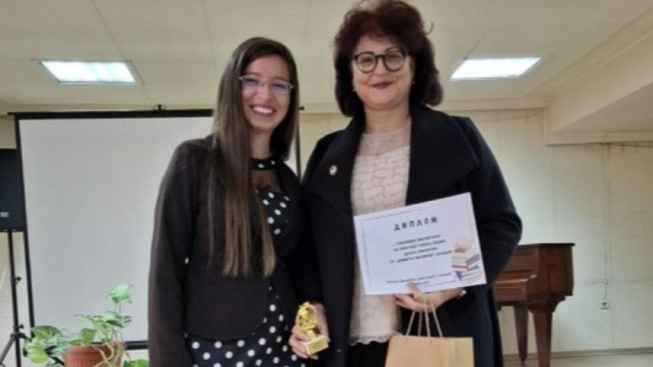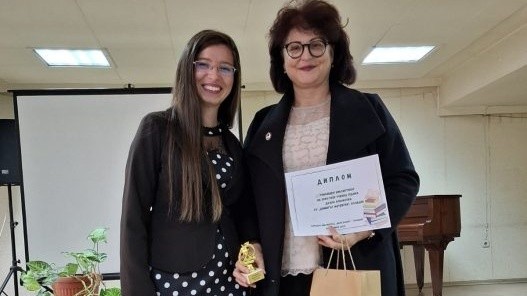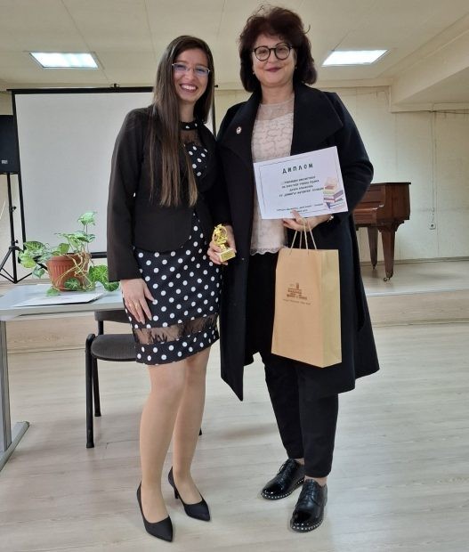 Награда, която й бе връчена в Деня на народните будители от отдел „Методичен“ на НБ „Иван Вазов“ и е признание за цялостната й работа и мисия да превърне библиотеката в СУ „Димитър Матевски“-Пловдив в информационно-образователен и културен център.