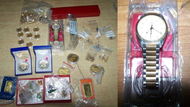 Митничарите намерили в скривалището зад седалката около 600 грама злато - златни монети, плочки, синджирчета, обици, както и часовник марка "Омега 8900", който струва почти 6000 евро, предаде ТАНЮГ, позовавайки се на съобщение на сръбските митници.