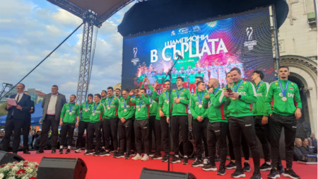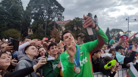 "Много съм емоционален и наистина не мога да повярвам какво виждам тук. Това е България! И щом аз и целият отбор го вижда това, няма как да не искаме следващото лято отново да бъдем тук, да печелим медали за България. Обещаваме ви едно – докато играем за България, всеки един тук е готов да умре на игрището", каза друга от звездите ни Симеон Николов.