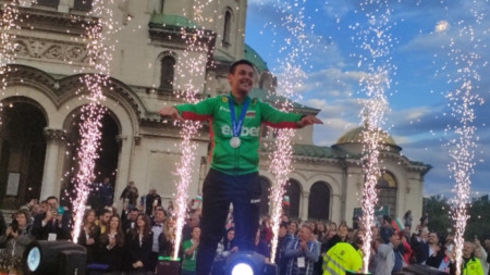"Изключително съм щастлив, че успяхме да обединим нацията и че всички вие сте тук, за да споделите успеха на една държава", каза пред скандиращото "българи юнаци" множество капитанът на волейболния ни тим Алекс Грозданов.