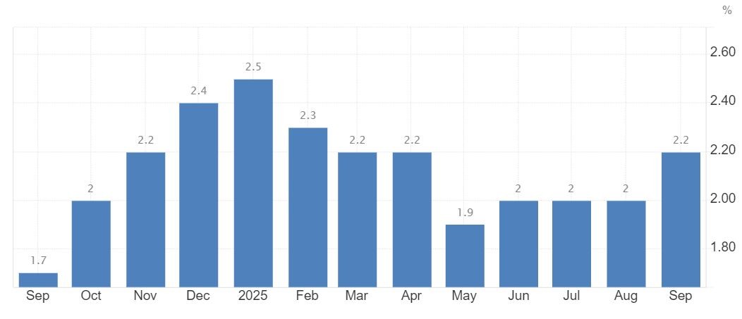 Основната инфлация, изключвайки цени на храни и енергия, остана за пети пореден месец на нивото от 2,3% - най-ниската годишна инфлация от януари 2022 г. насам, но спрямо август нараства с 0,1 на сто.