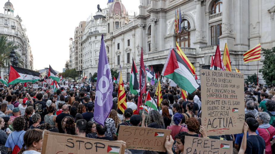Митинг в подкрепа на палестинския народ и Глобалната флотилия Сумуд (GSF) във Валенсия, Испания, 2 октомври 2025 г.