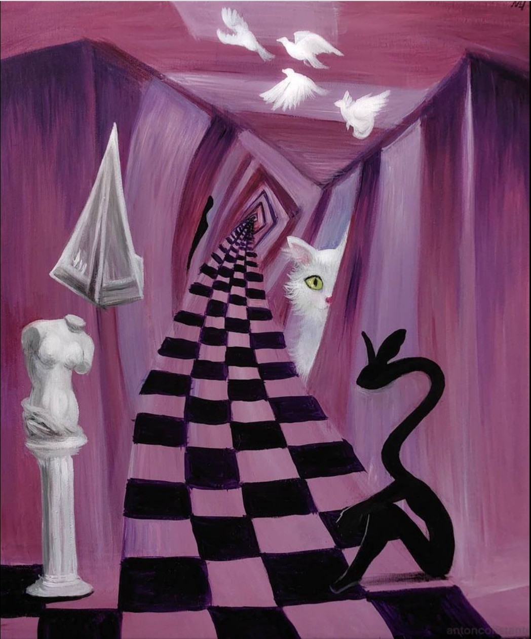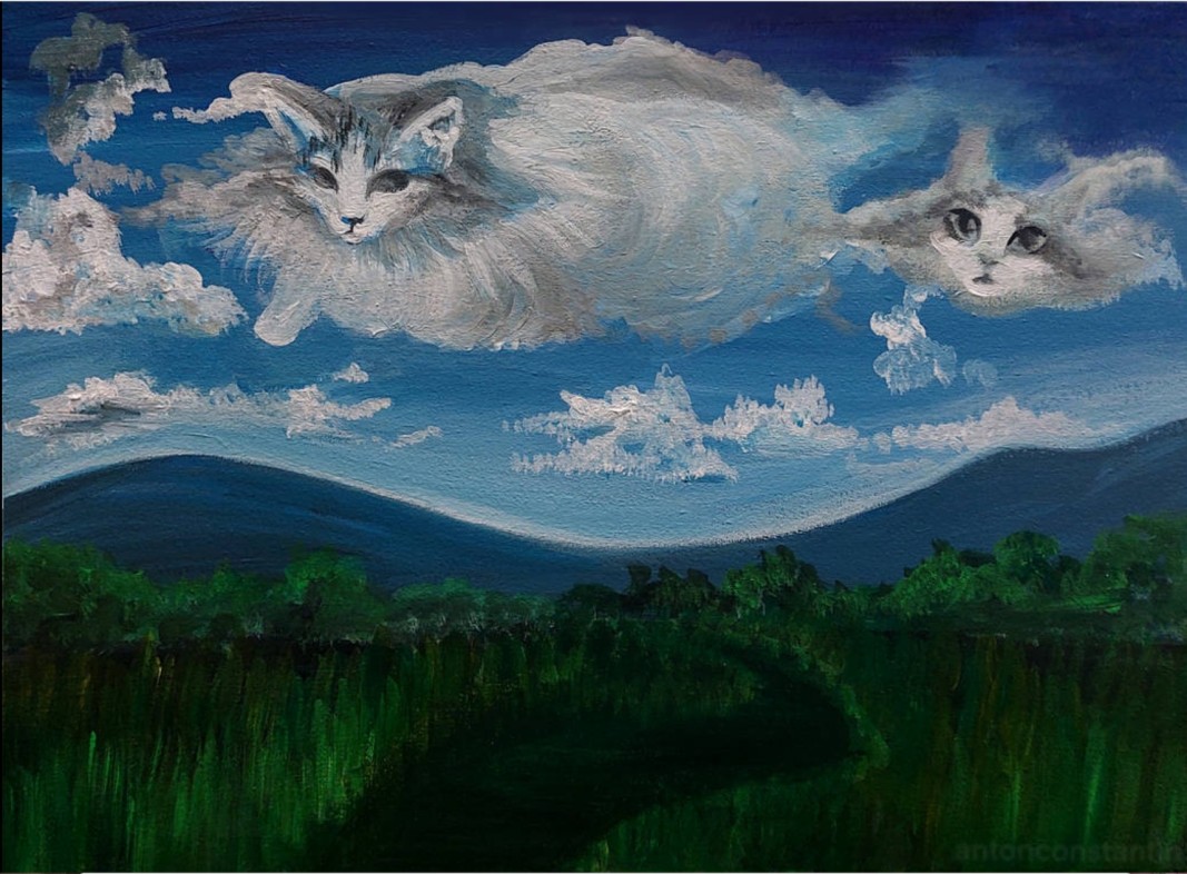 "Вдъхновявам се от стила сюрреализъм, в който изобразеното е като метафора за емоции или сложни комбинации от мисли, понякога противоречиви – казва Антон-Константин в студиото на Радио България. – Обичам да рисувам животни и смятам, че те трябва да бъдат повече уважавани. Когато виждаме някое животно в картината, не мисля за него като за нещо отделно от човека, защото то е някакъв вид негово отражение. Например ако е зайче, може да бъде невинността в нас, а ако е кон – да е свързано с доброта, увереност. Т.е. всяко животно може да има своята човешка характеристика."