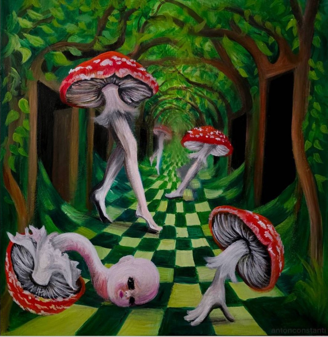 "Наистина има такава картина, която е вдъхновена от обстановката на една софийска улица – обяснява Антон-Константин. – На пътя лежи тяло, но то е куклено – няма кръв, от него излизат растения и действително съдържа нещо апокалиптично. Сцената може да се погледне по няколко начина, но аз не обичам да давам конкретна интерпретация. Предпочитам хората да се водят от собствената си гледна точка. Тя може да има и добра, и лоша страна, зависи от начина, по който поглеждат една картина. Например добрата може да бъде, че от счупената кукла излизат растения – метафора на това, че когато бъдем наранени, можем да станем по-мъдри и да се научим как да постъпваме."