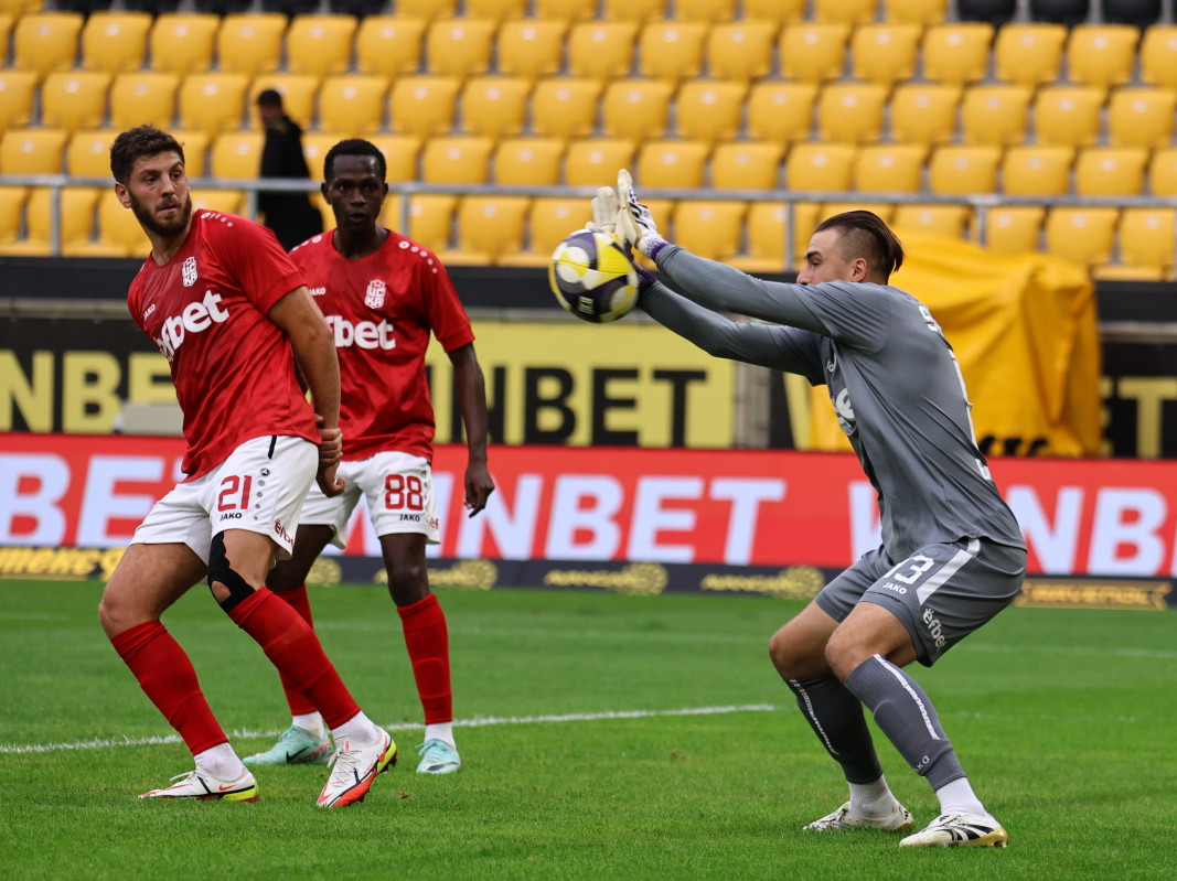 След 20 минути игра Максим Ковальов направи спасяване след шут на Петър Витанов от границата на наказателното поле на гостите.