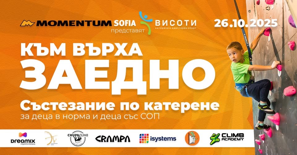 В края на този месец, на 26-и октомври, в зала “Моментум” в София ще се проведе състезанието “Към върха заедно” - катерене едновременно на деца в норма и на деца със специални образователни потребности (СОП). Един от основните организатори е Вили Евтимова, председател на новосъздадения клуб “Висоти - катерене и адаптиран спорт”, в партньорство с екипа на залата. Това е поредното подобно събитие за последните няколко години, което дава шанс на деца със специални потребности да участват в състезание. Голяма част от тях нямат възможност да тренират какъвто и да е спорт, родителите им ги водят на индивидуални тренировки с надеждата да постигнат някакво подобрение, тъй като се оказва, че катеренето се отразява благоприятно върху физическото и интелектуалното развитие.