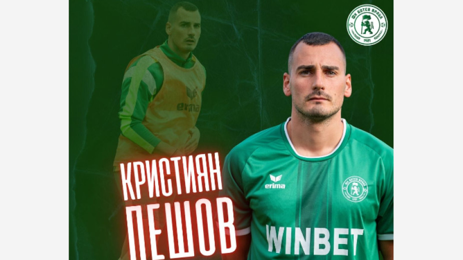 Кристиян Пешов вече тренира с отбора и ще бъде на разположение на старши треньора Тодор Симов", се казва в прессъобщението на врачани, публикувано на официалната им страница.