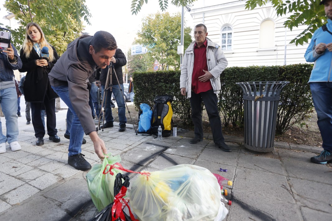 Представителите на организацията призоваха гражданите от тези квартали да донесат събраните отпадъци и да ги изсипят пред сградата.