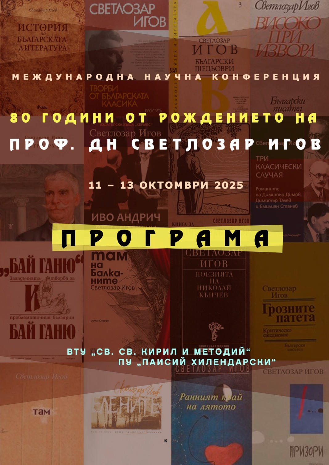 Катедрата по история на литературата и сравнителното литературознание към Филологическия факултет на Пловдивския университет "Паисий Хилендарски" организира Международна конференция, посветена на 80-годишнината от рождението на изтъкнатия литературен критик, историк, писател и преводач проф. Светлозар Игов (1945–2023).