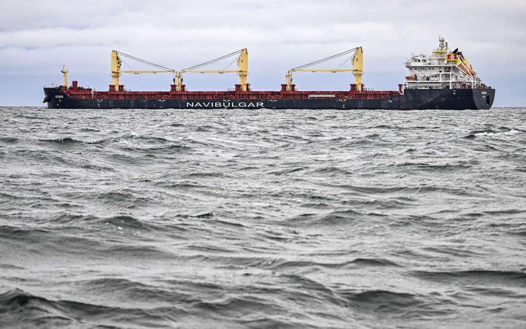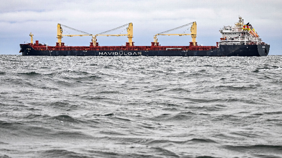 Българският товарен кораб "Вежен", закотвен в Балтийско море.