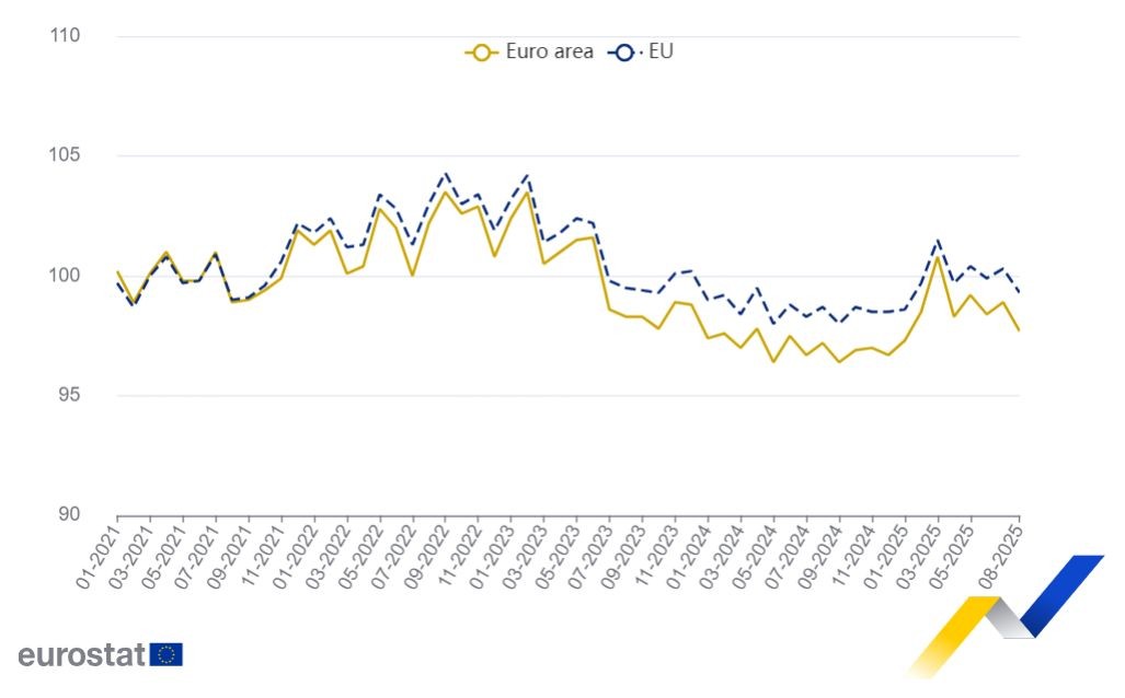 През август 2025 г. индустриално производство в еврозоната и в целия ЕС се понижи, заличавайки растежа месец по-рано, което е пореден знак за нестабилност на сектора, показват данни на Евростат.