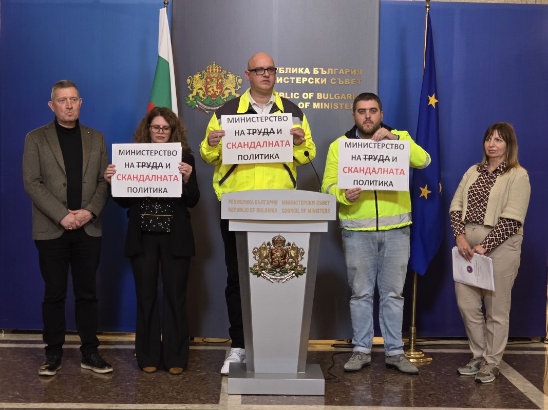 В знак на протест представителите на КНСБ в Тристранния съвет - Тодор Капитанов и Любослав Костов, дойдоха на заседанието на НСТС, облечени със светлоотразителни якета.