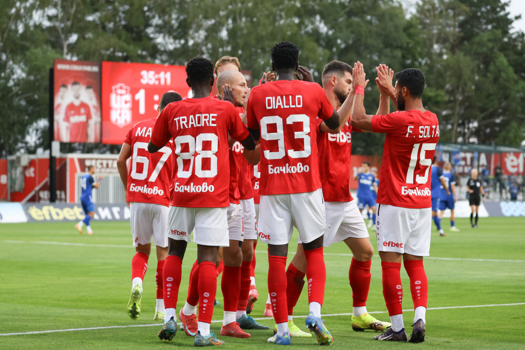 Осем минути преди края "червените" си отбелязаха нелеп автогол, след като Андре Хофман върна към вратаря Димитър Шейтанов, който бе хванат в крачка и допусна топката в мрежата си за 5:2.