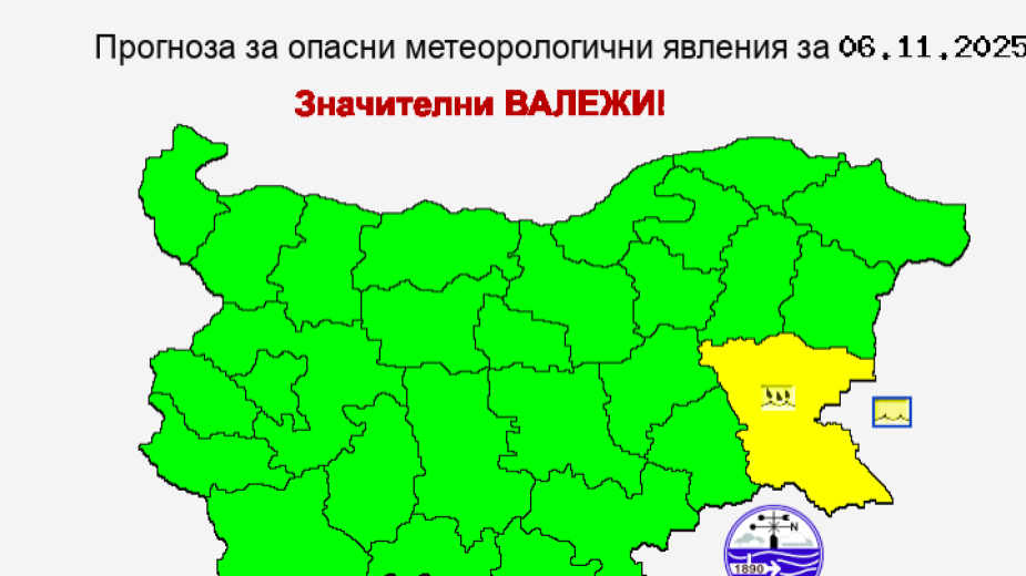 Жълт код за значителни валежи е обявен за четвъртък, 6 ноември, за Бургаска област.